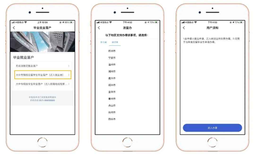 以“大中专院校应届学生毕业落户(迁入就业地)” 为例