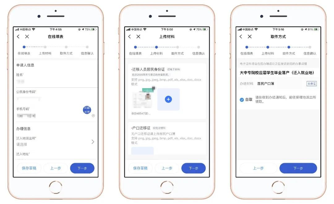 在线填表、上传材料,