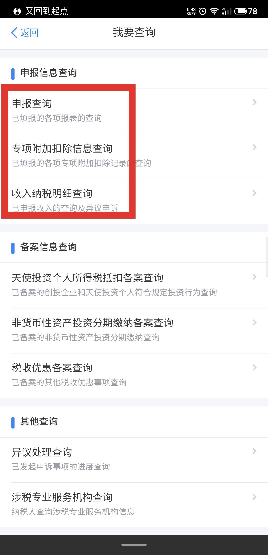 第二步:选择需要查询的项目,根据系统提示完成查询流程