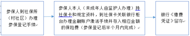 参保人员在户籍所在地街道(乡镇)社会保障服务机构、医保经办机构或由街道(乡镇)组织的社区(村)代办点办理完参保手续并选择代扣代缴的:可就近到自己的社保卡关联银行网点办理金融账户激活和存款手续。