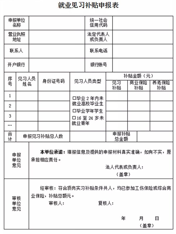 1、加盖单位公章的《就业见习补贴申报表》;