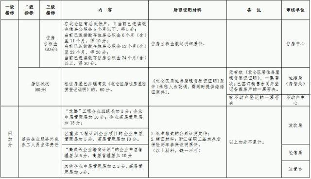 北仑区青年量化积分申报公租房租赁补贴计分表