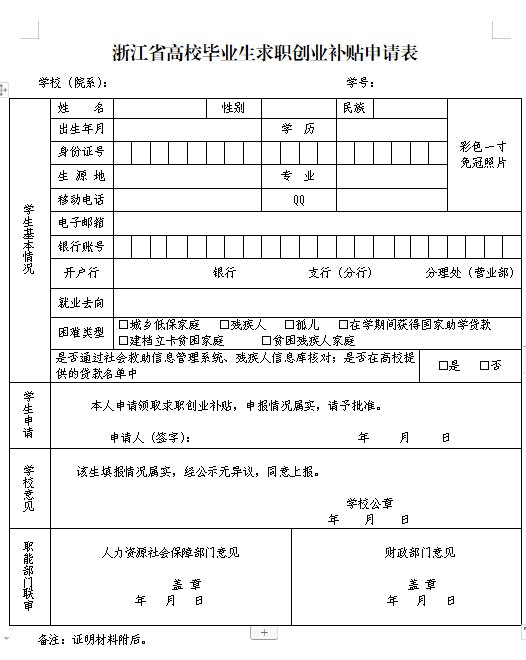 宁波高校毕业生求职创业补贴申请表(附表格样式+下载)