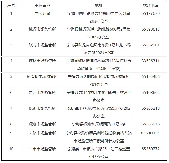 (一)宁海县市场监督管理局