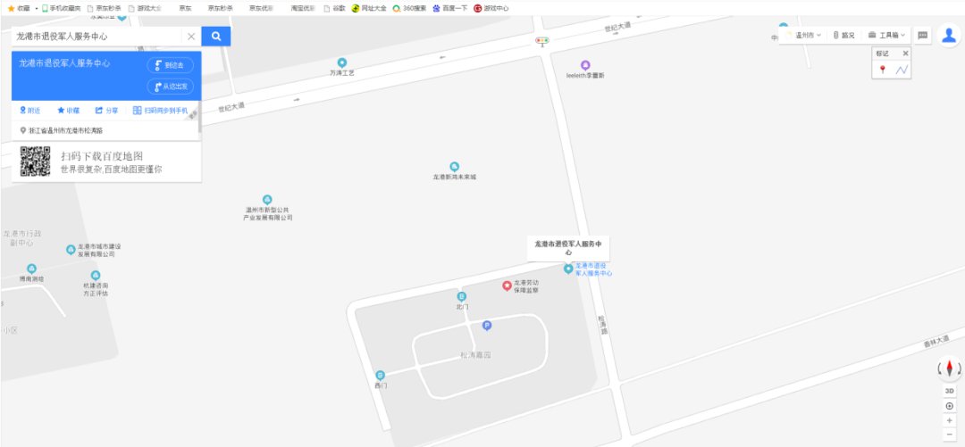 (世纪大道与松涛路交叉口向南250米处),可在“百度地图”定位“龙港市退役军人服务中心”。