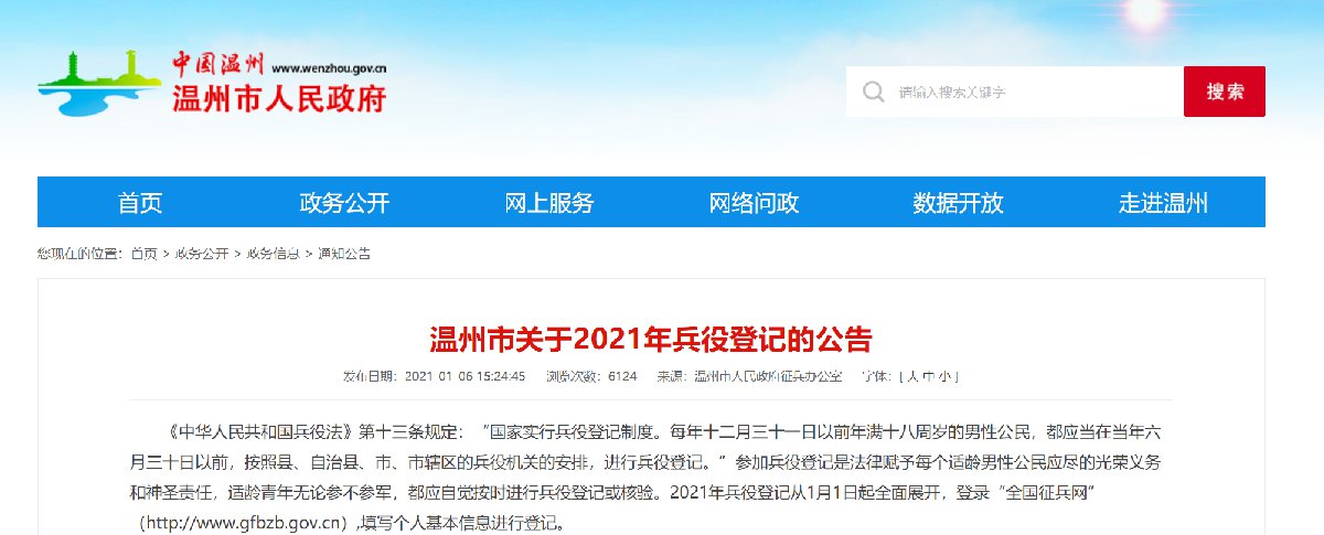 温州市关于2021年兵役登记的公告