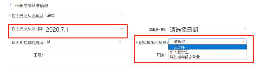 添加该人员时,先填写任职受雇日期。注:只适用7月以后新入职的人员。之后选择入职年度就业情形—其他当年首次就业/新入职学生。填写完并报送过人员信息之后累计减除费用就会自动累计了。