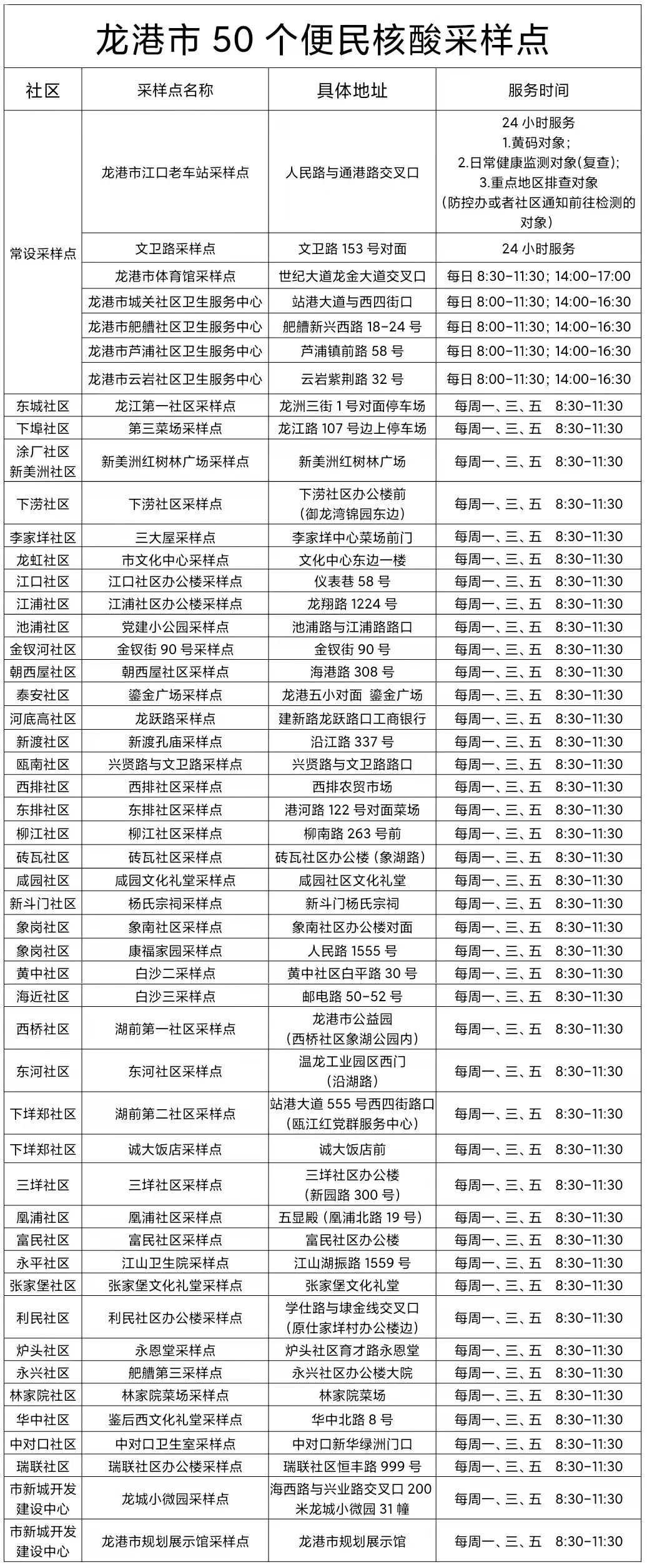 2022温州龙港市核酸检测采样点最新名单(地址+电话+时间)