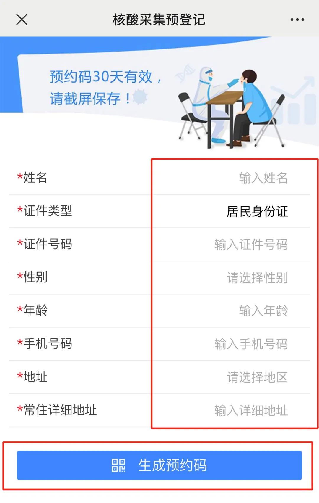 ②如实填写信息并点击生成预约码