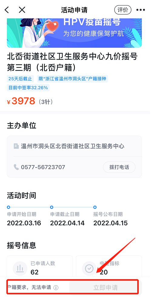 2022年温州洞头区北岙街道九价HPV疫苗预约摇号指南