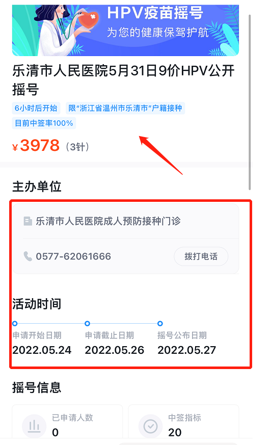 乐清市 天成街道9价HPV疫苗摇号