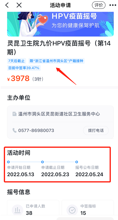 洞头区 灵昆卫生院 9价HPV疫苗摇号第14期