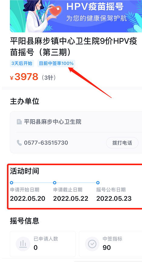 平阳县 麻步镇 9价HPV疫苗摇号第3期