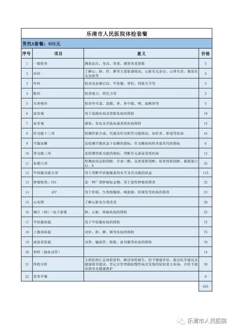 温州乐清人民医院健康体检中心2022年体检套餐(附咨询方式)