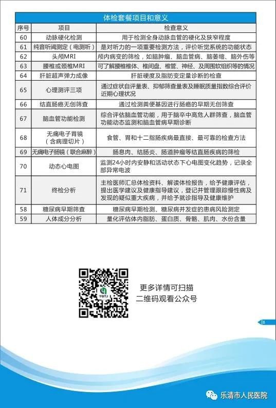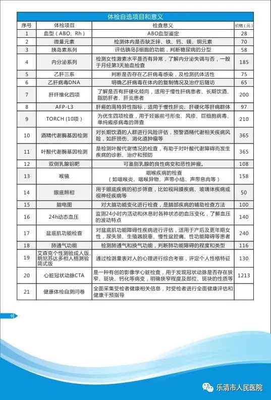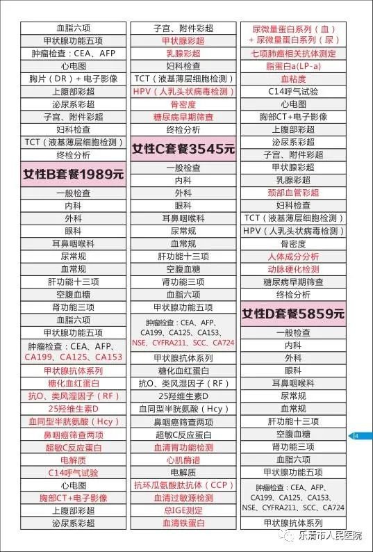 乐清市人民医院新的体检套餐从2021年12月20日开始实施