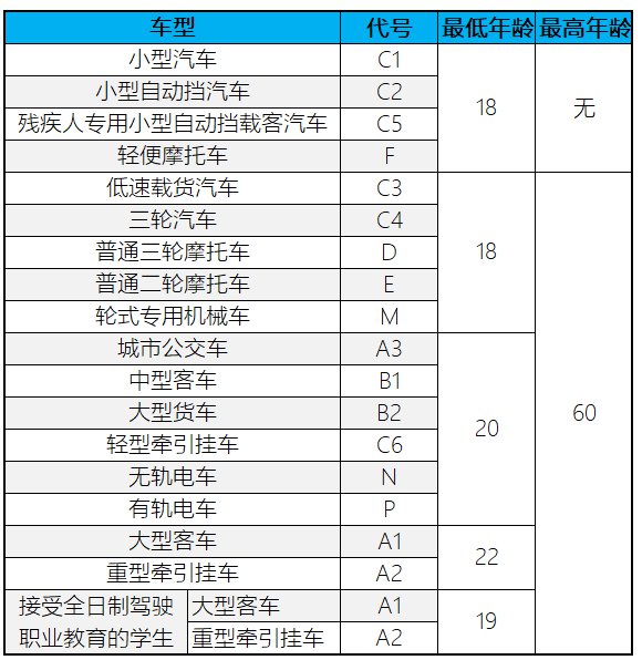 温州各种准驾车型的驾驶证申请年龄一览