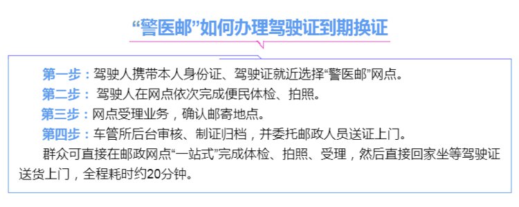 驾驶员在医疗机构体检后,可以通过交管12123申请换证,证件邮寄到家。