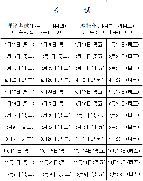 2022年温州交运洞头驾校考试和摩托车培训时间安排表