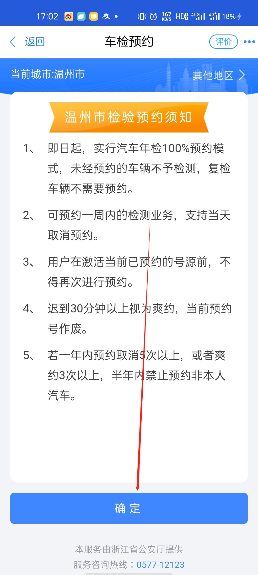 第四步,阅读预约须知,点击“确定”;接着点击页面中的“去预约”;
