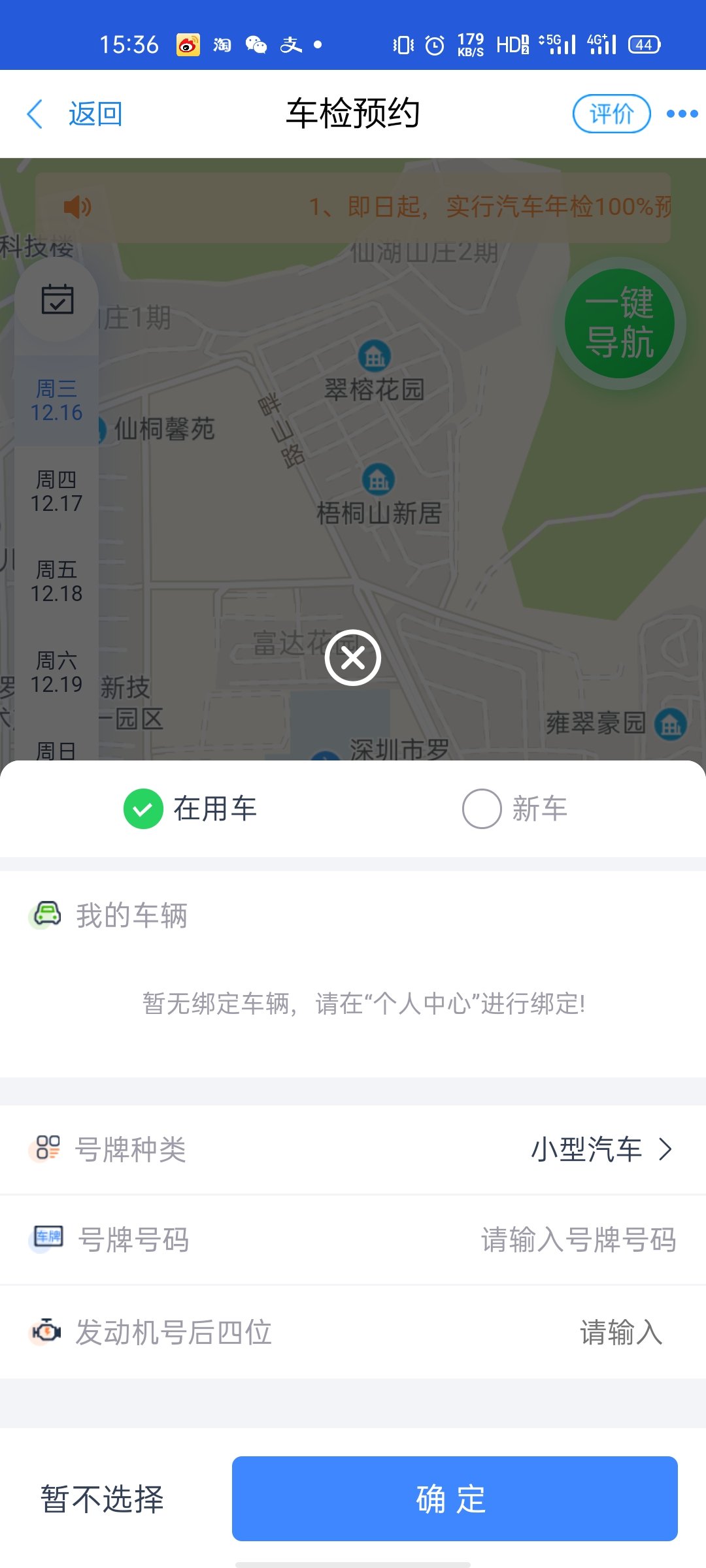 第五步,输入个人车辆信息并确定;接着选择车检的公司;