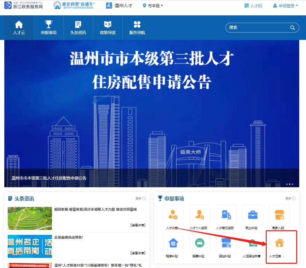2022温州瓯海第三批人才住房配售申请入口(3月15日至4月15日)