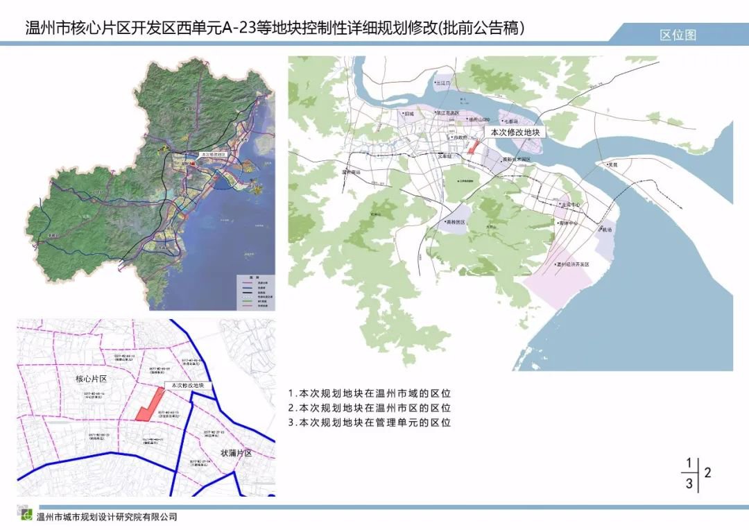 《温州市核心片区开发区西单元A-23等地块控制性详细规划修改》批前公告