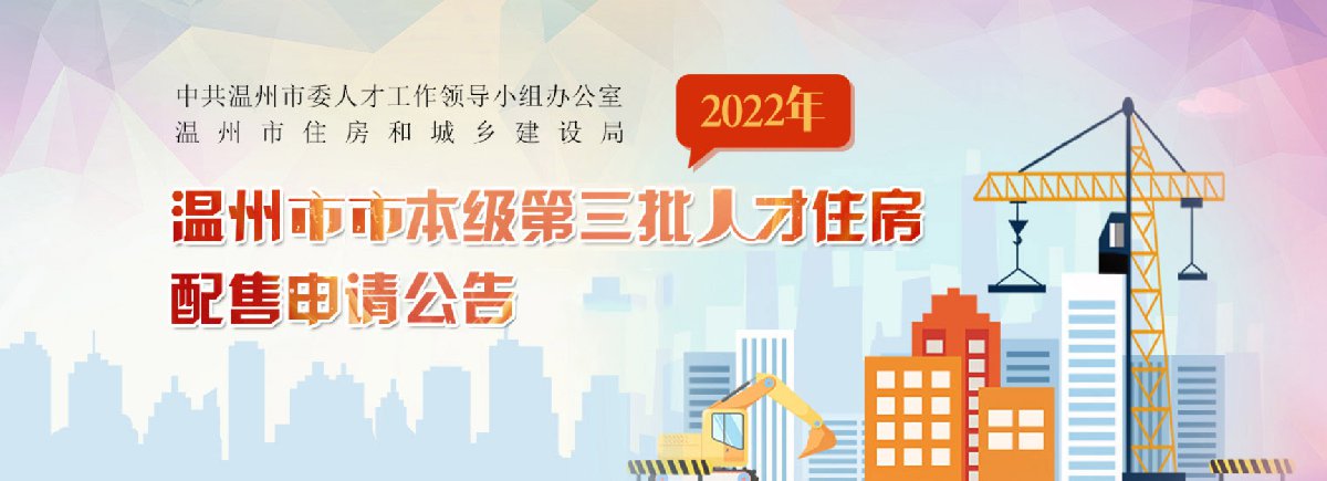 为进一步激励人才,集聚更多人才来温创新创业,根据《关于大力实施“瓯越英才计划”高水平建设浙南重要人才中心和创新高地的40条意见》(温委人〔2022〕1号)、《温州市人才住房租售并举实施办法》(温委办发〔2019〕70号)文件精神,现就温州市市本级第三批人才住房配售申请工作有关事项公告如下:
