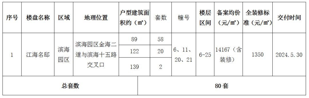 温州经济技术开发区配售房源位于滨海园区C-10地块,由温州市新城恒裕房地产开发有限公司开发建设,人才住房配售商品住房总建筑面积7920.64平方米,总套数80套。其中户型建筑面积为89平方米的58套,122平方米的20套,139平方米的2套,计划于2024年5月30日交付。
