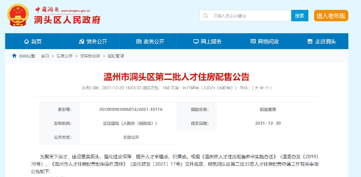 温州洞头区2021年第二批人才住房配售公告(35套)