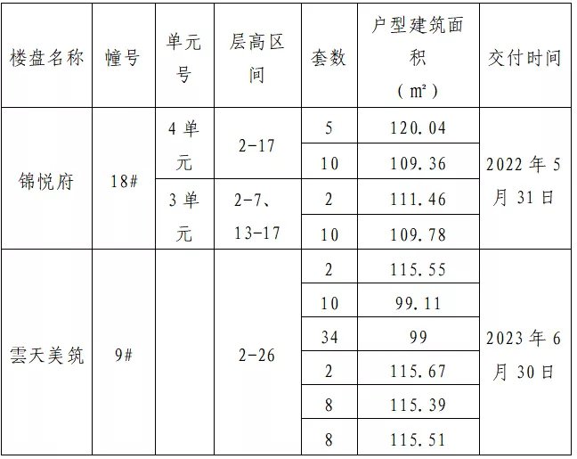 2.龙港市新城XC-6-23地块(雲天美筑)9#楼,建筑面积约6666平方米,套数64套,均为毛坯房。该项目由温州景祥置业有限公司开发建设,计划于2023年6月30日开始交付使用。地块坐落于龙港市新城开元路以北、霞飞路以南、启源路以东、世纪大道以西。