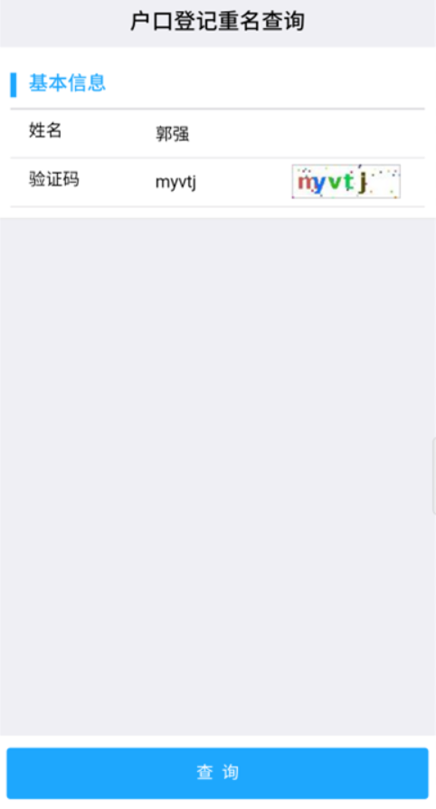 注册完账号和实名认证,在登录状态下,就能够进入“户口登记重名查询”服务。输入姓名、验证码,便可查询浙江重名人数,譬如,小编随机输入一个名字“郭强”。