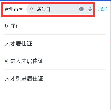 1、下载登录“浙里办”APP,首页定位“台州”,搜索“居住证”