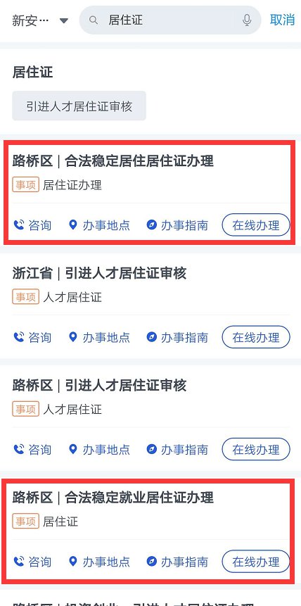 注:搜索后出现和“居住证”相关的业务,成年人“合法稳定居住”和“合法稳定就业”两个条件满足其一即可。