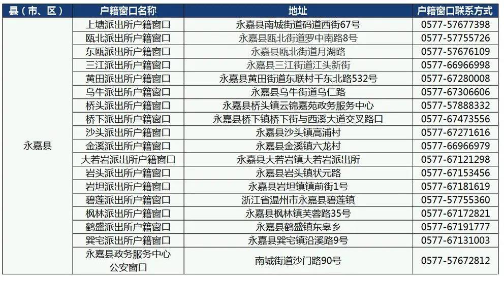 温州市永嘉县户籍窗口地址一览(永嘉户籍大厅电话号码)