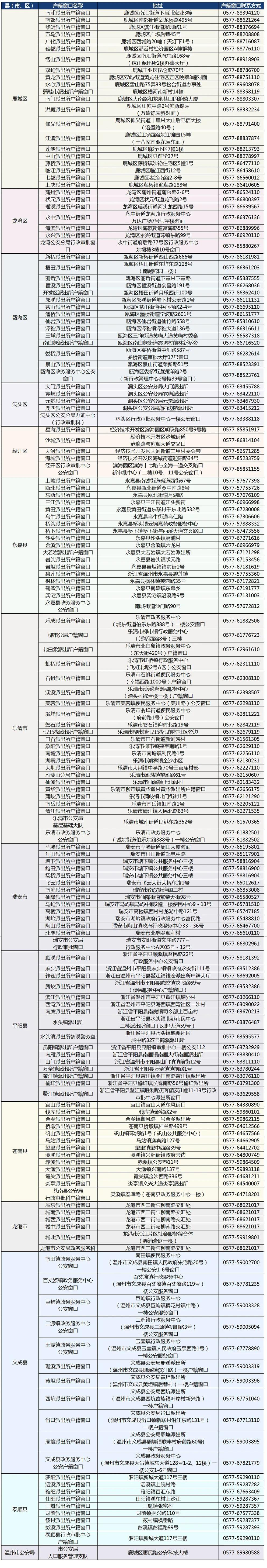 温州市户籍窗口联系方式一览 温州市公安局户籍电话