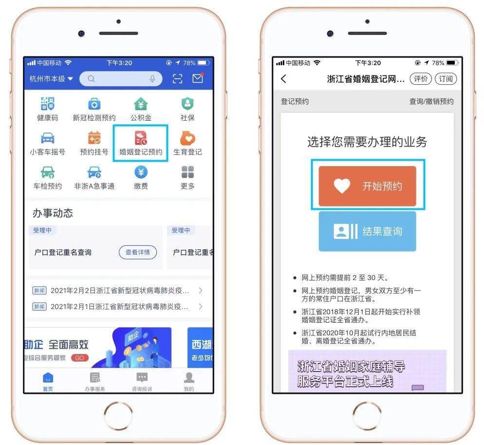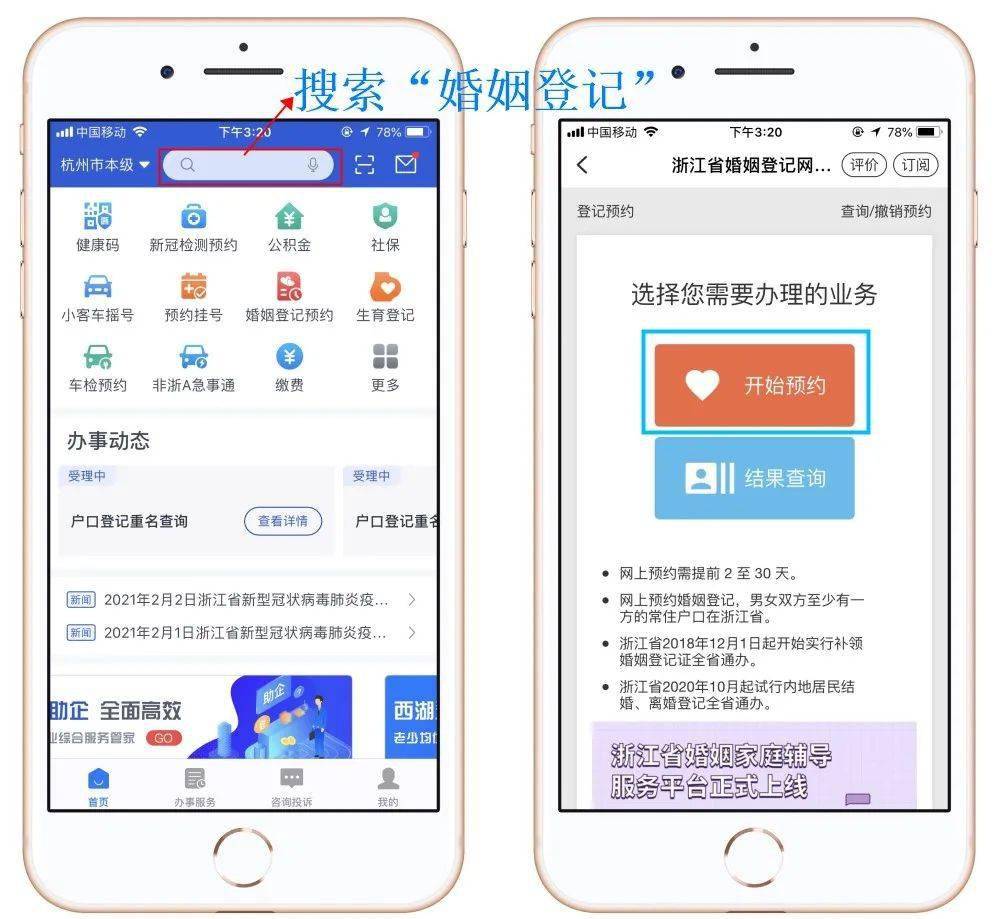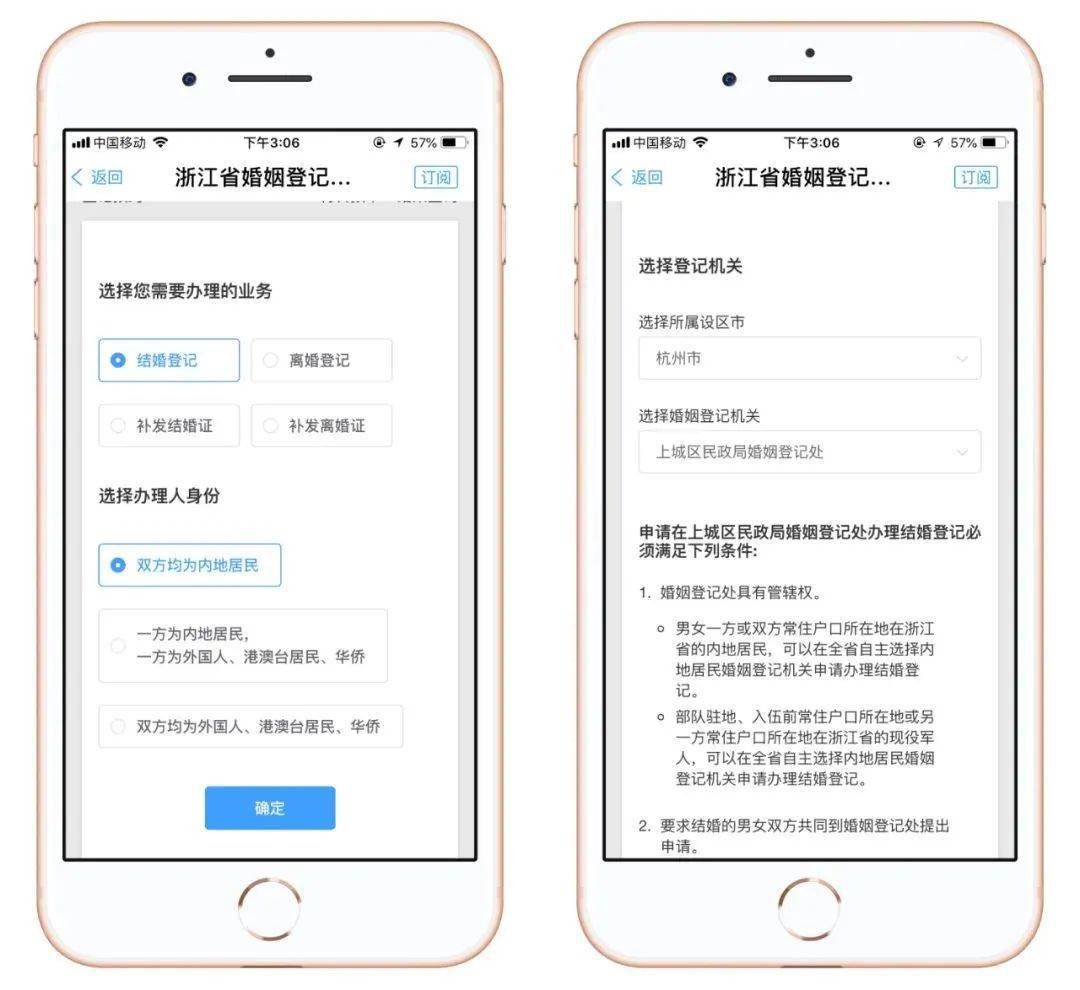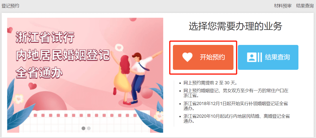 有需要的朋友可提前 2至30日登录 浙里办进入“浙江省婚姻登记网上预约”系统,在 全省范围内自主选择内地居民婚姻登记机关进行婚姻登记网上预约。