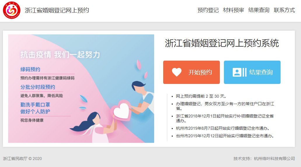 2、网上预约婚姻登记,男女双方至少有一方的常住户口在浙江省。