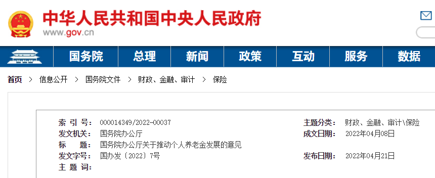 国务院办公厅关于推动个人养老金发展的意见