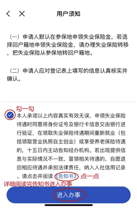 03、进入用户须知,详细阅读告知书再进入办事