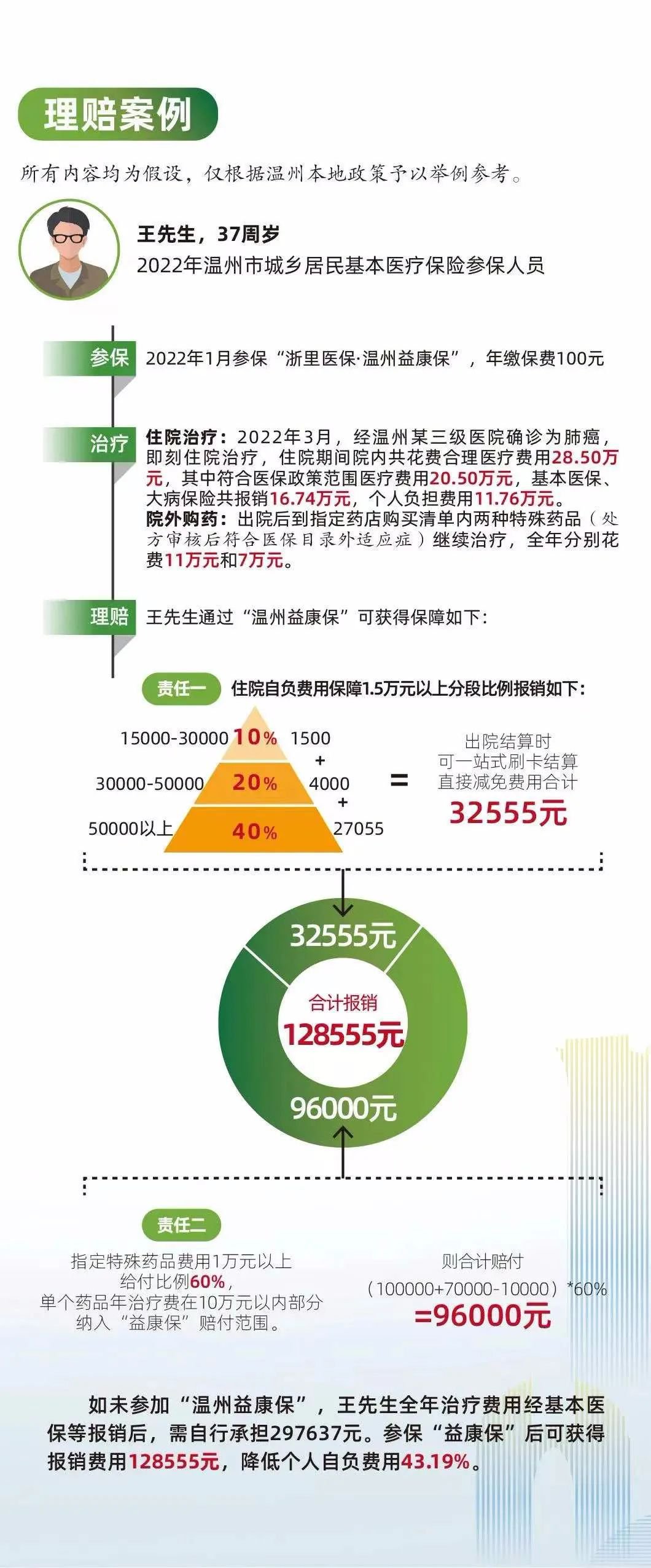 王先生通过“温州益康保”可以这样报销: