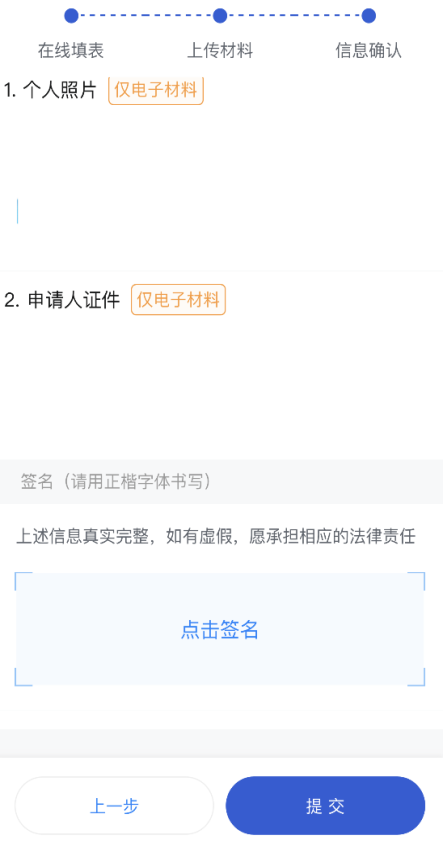5.确认个人信息填写无误后,按“点击签名”,签名后提交即可。