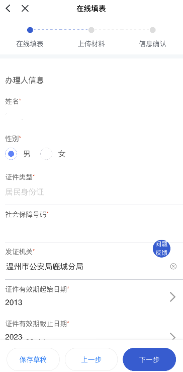4. 上传个人照片以及身份证正反面照片后,点击下一步 。