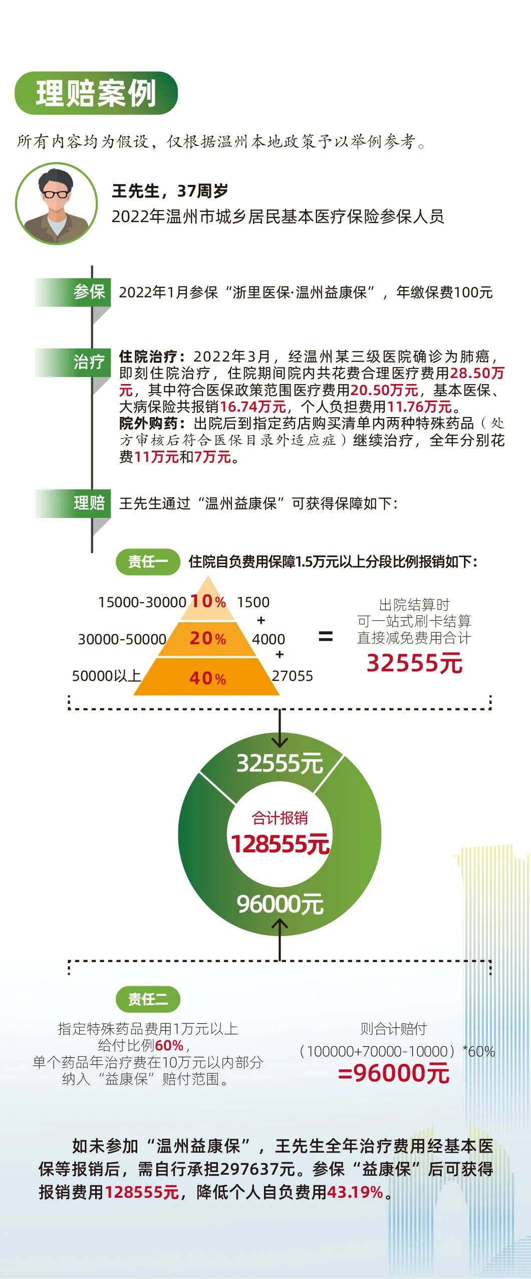 2021年3月,我市唯一一款由市政府指导设计的公益普惠性全民健康补充医疗保险“温州益康保”正式上线。该产品与基本医保无缝衔接,不设年龄、健康状况、既往病史等限制,只要是本市职工基本医保、城乡居民基本医保参保人均可参保。2022年“浙里医保·温州益康保”全面升级,最终保障内容看起来更“简洁易懂”,从原来6项保障责任简化为2项。