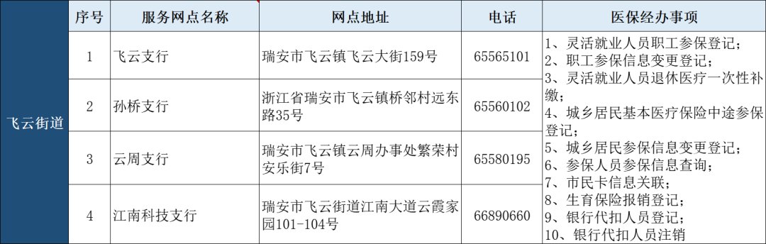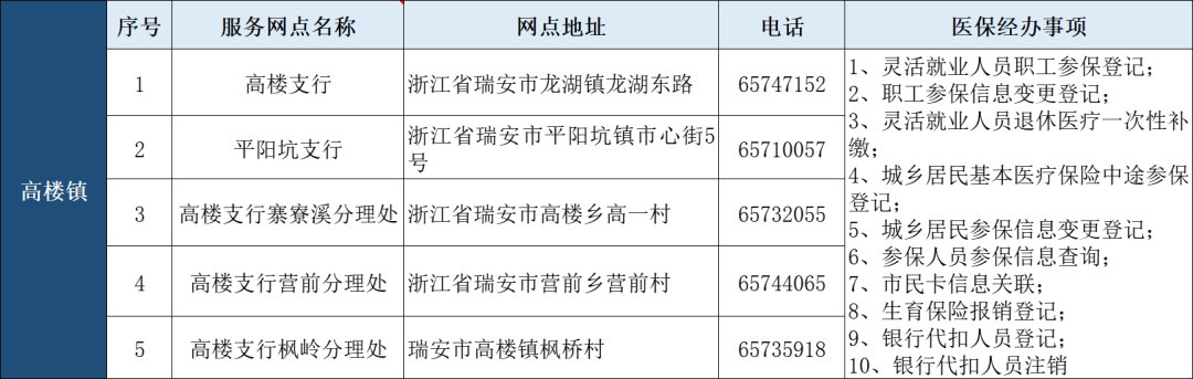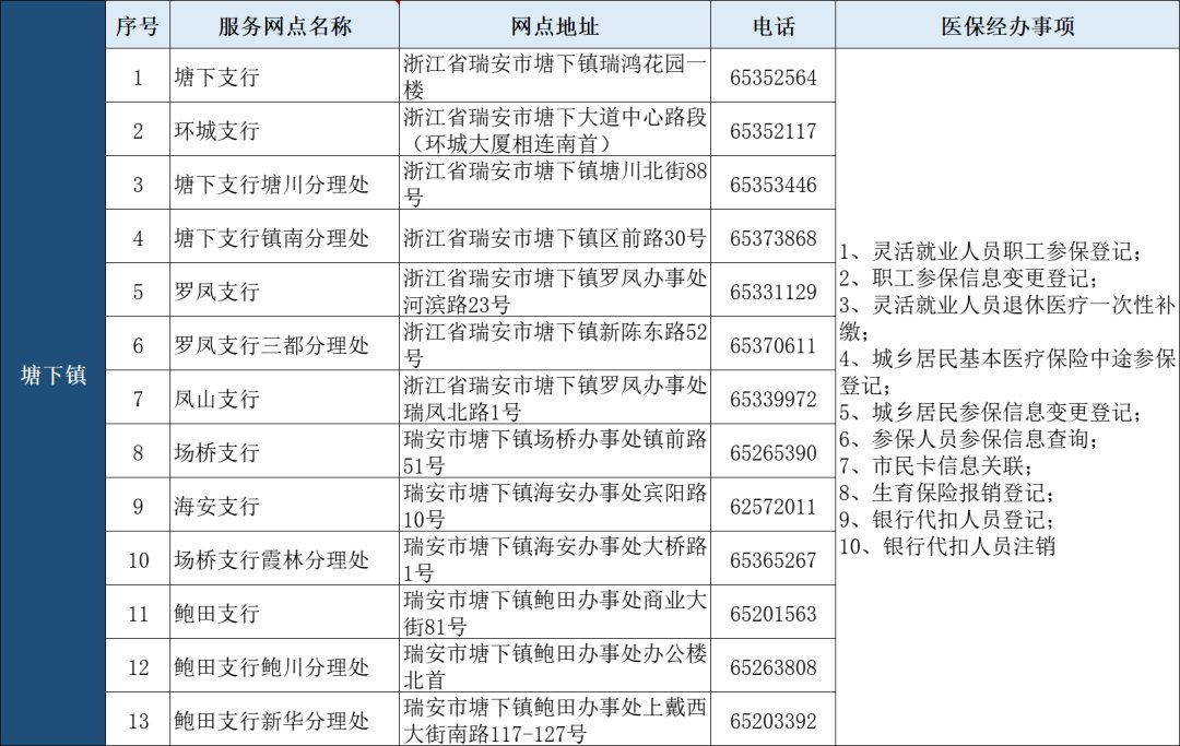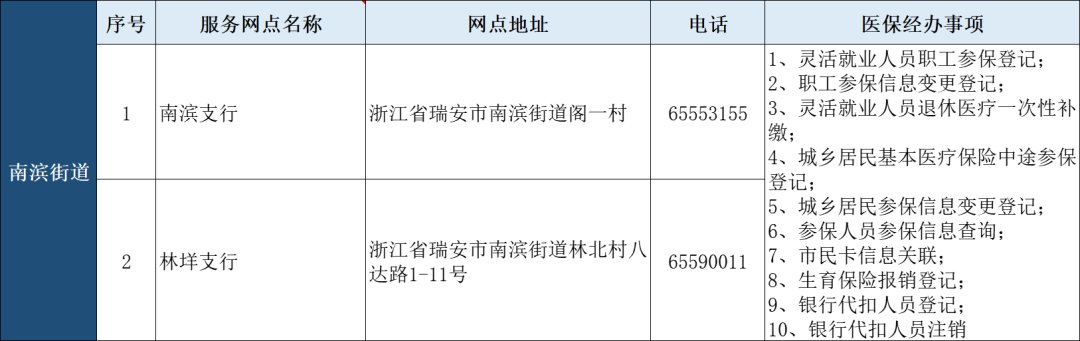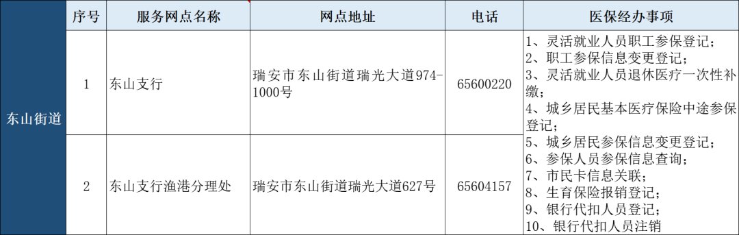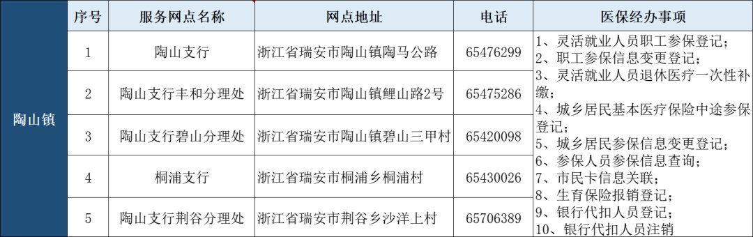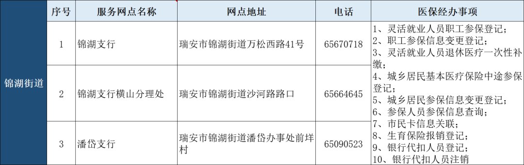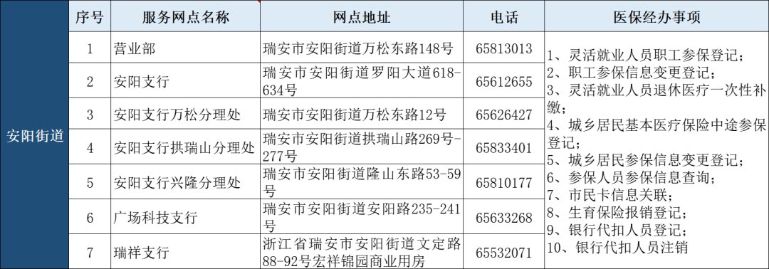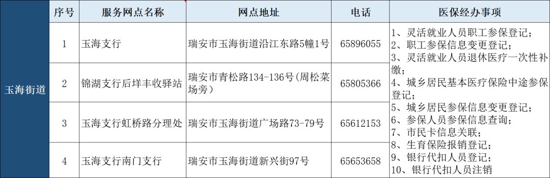 瑞安市“医保业务经办”银行代办点