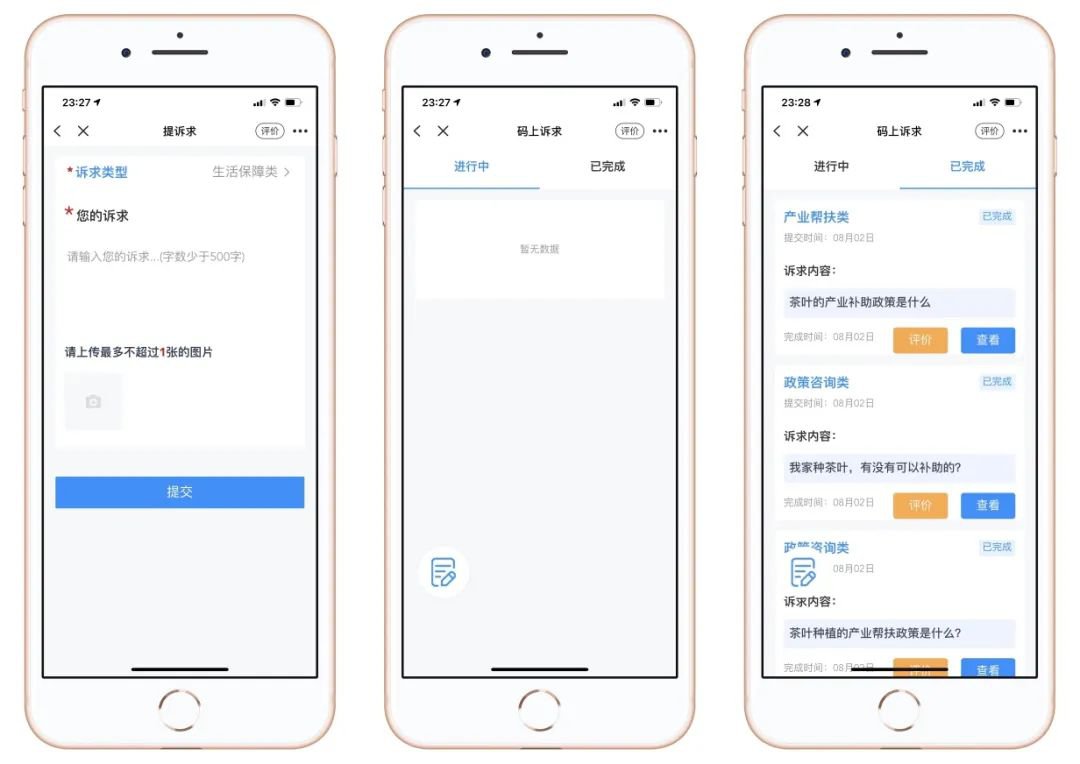 点击【我的需求】,可查看进行中和已完成的需求, 还可一键提交诉求。