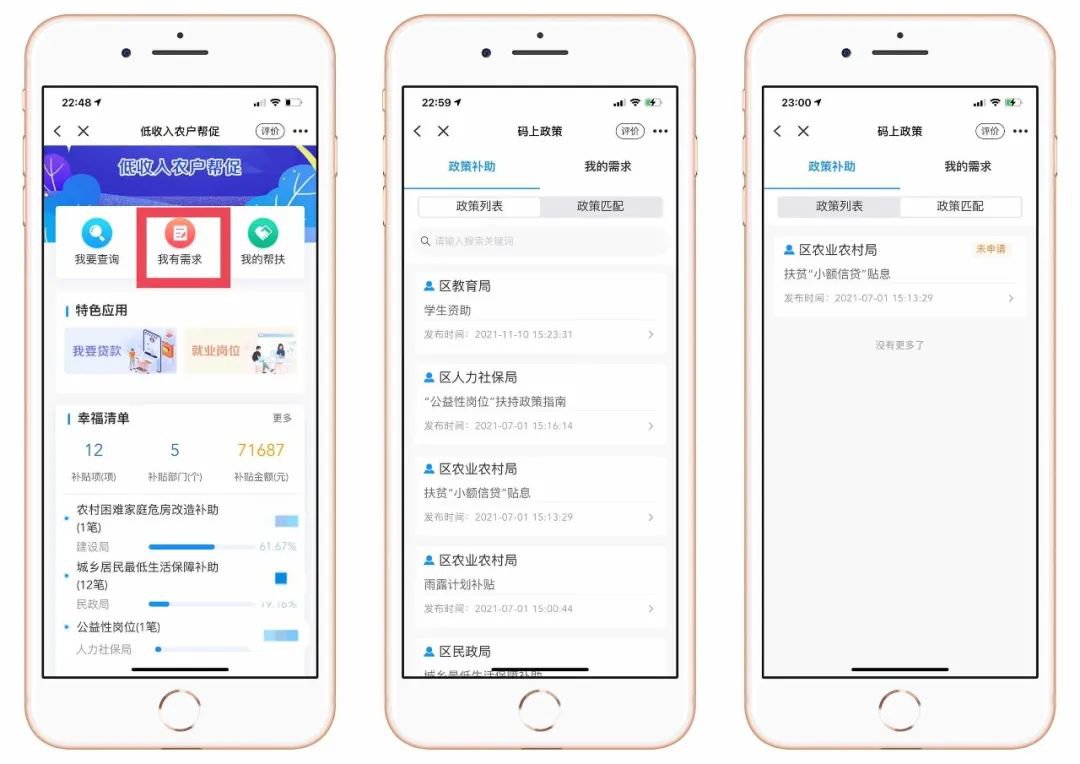 可查看基本情况和幸福清单,包含个人基本信息、家庭成员、政府详细补贴记录等。