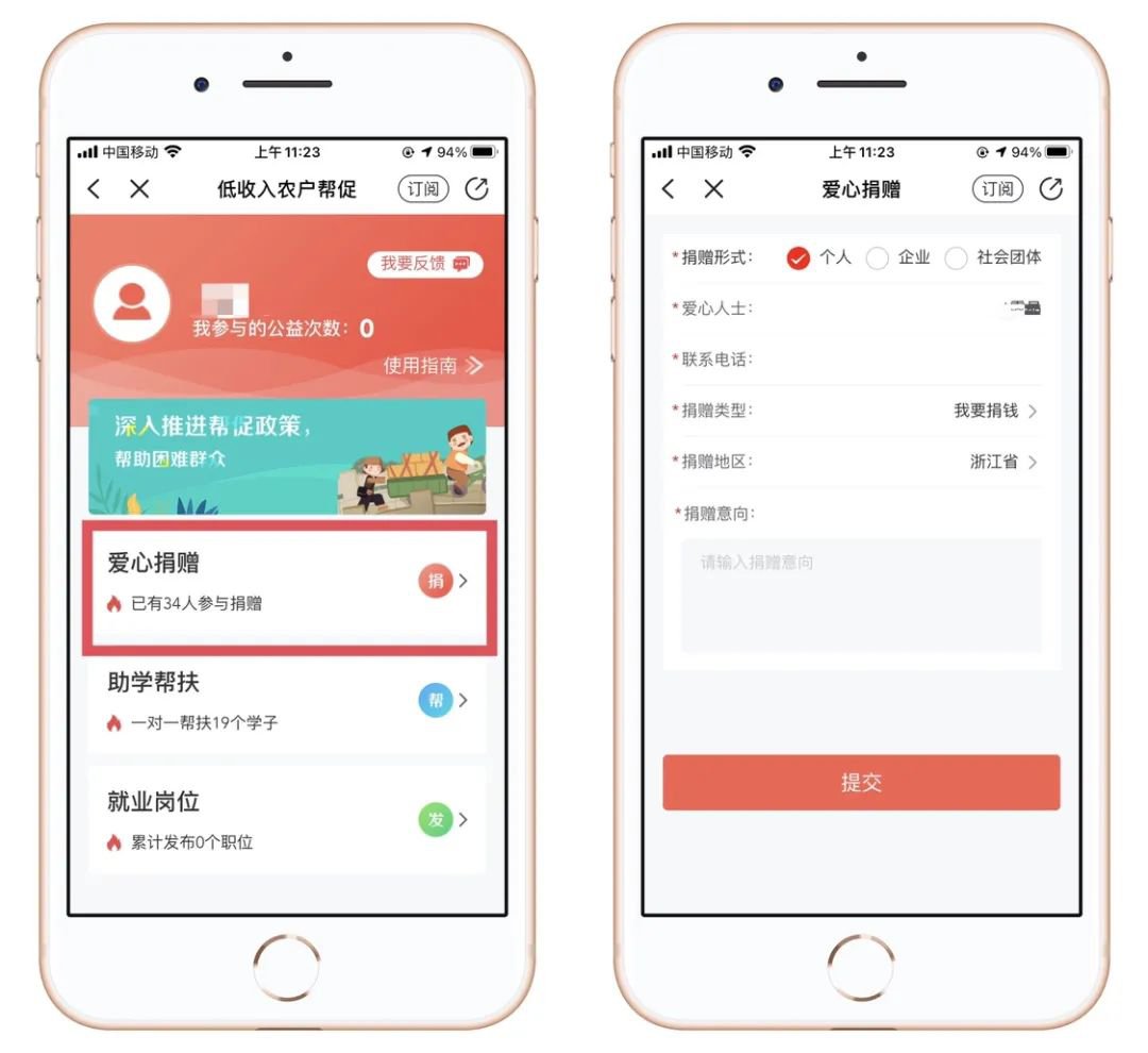 值得一提的是,社会爱心人士可以进入【低收农户帮促】的社会侧页面,在线参与捐赠、帮扶学子、发布岗位,为乡村脱贫奉献自己的力量!