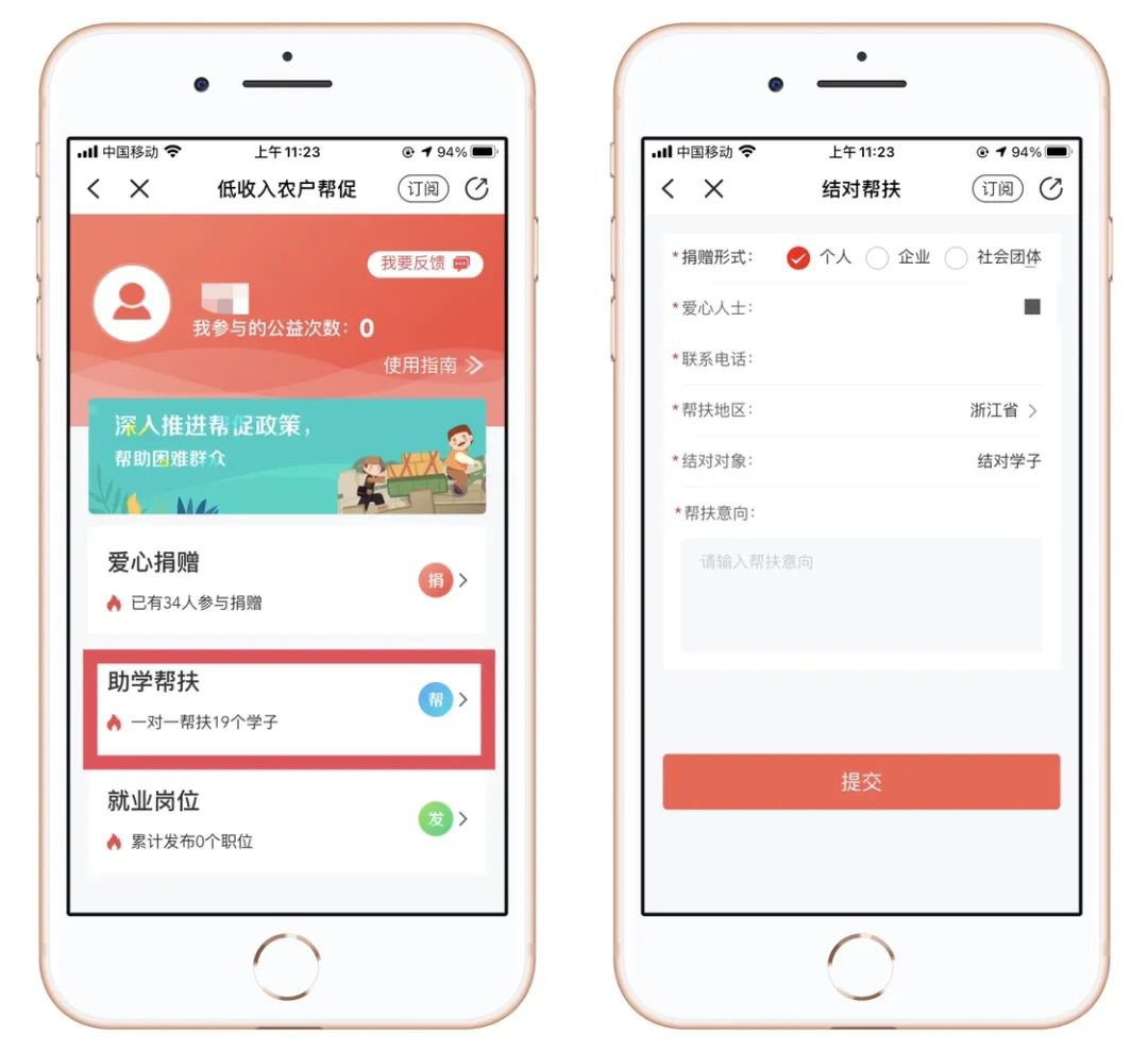 如果想帮助家境贫困学子,动动手指就能发起结对帮扶。后台管理人员收到助学意愿后进行联系并安排具体帮扶方案。帮扶一人,带动一家!