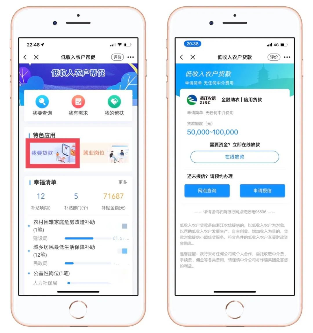 有资金需求的低收入农户通过“浙里办”APP可一键申报贷款需求。接到需求申请后,银行业务人员会主动上门了解农户家庭条件、生产经营、贷款用途等情况。从农户提出诉求,业务人员上门核实到最后资金到账,整个流程一般在48小时以内,最后环节线上办理时间不到2分钟。