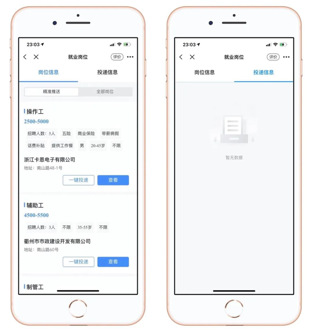 点击【就业岗位】,可查看招聘信息,并进行精准投递。